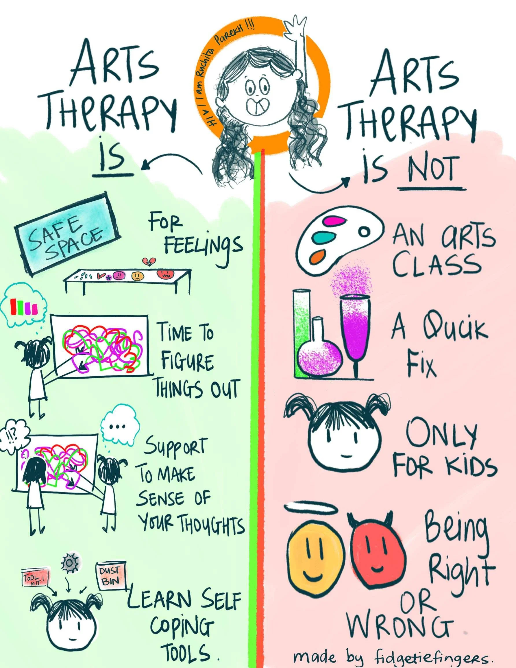 Freedom: In art therapy, you are the boss—there are no mistakes and no "right" way to do it.